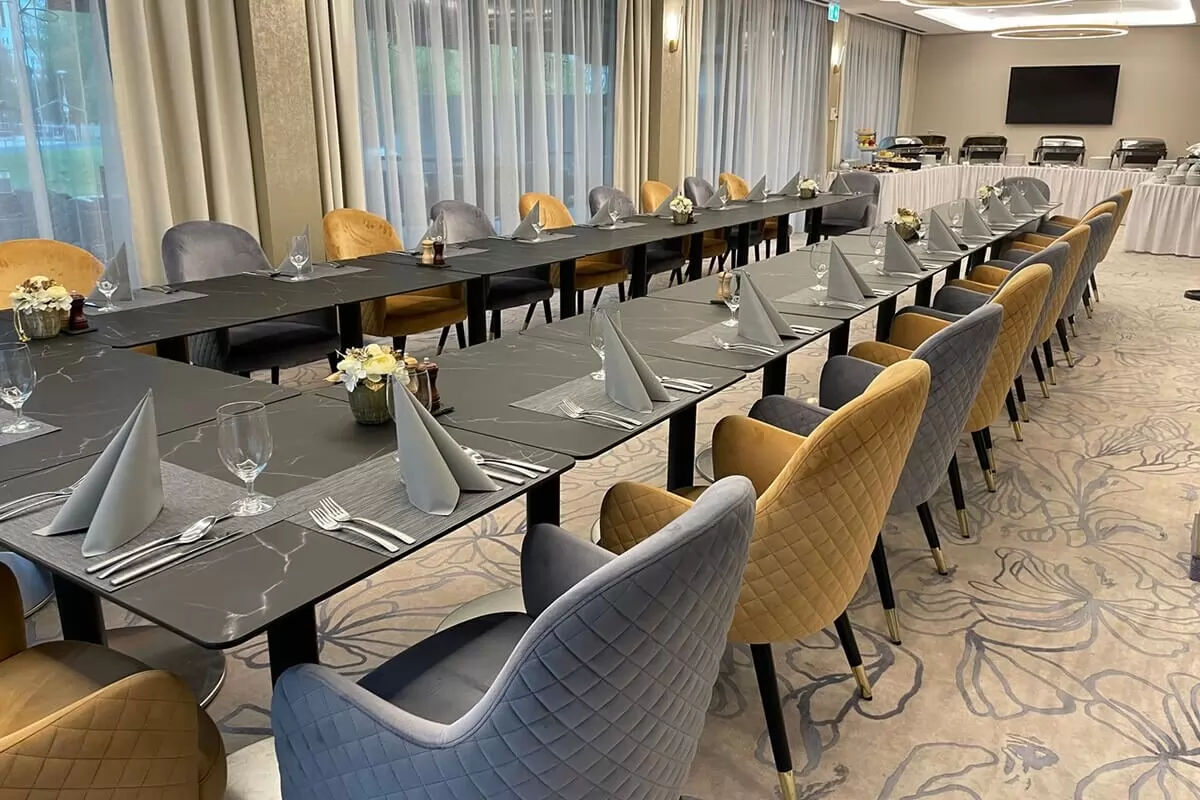 A prémium minőségű rendezvények mellé gourmet fogásokat, gasztronómiai élményeket is kap hotelünk éttermében. A catering fontos része minden eseménynek, amely hozzájárul az esemény színvonalához. Éttermünkben friss és helyi alapanyagokból készülnek kiváló fogások, melyek az adott rendezvény jellegéhez igazodnak: ültetett rendezvény esetén felszolgált bankett menüsor, állófogadáson, nagylétszámú konferenciák részére pedig büfémenü választható. Az ételek mellett az italokra is kiemelt figyelmet fordítunk - minőséget és népszerű márkákat kínálunk vendégeink számára.