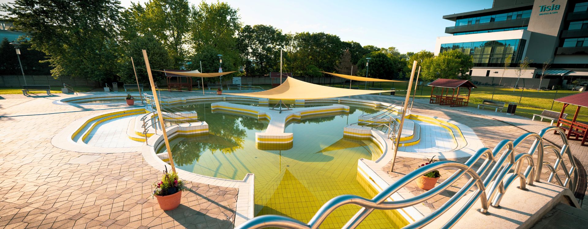 Băile termale din Tiszaújváros este considerată una dintre cele mai prestigioase instituții de wellness din țară. În secțiunea interioară, veți găsi trei bazine cu apă medicinală, după cum urmează: